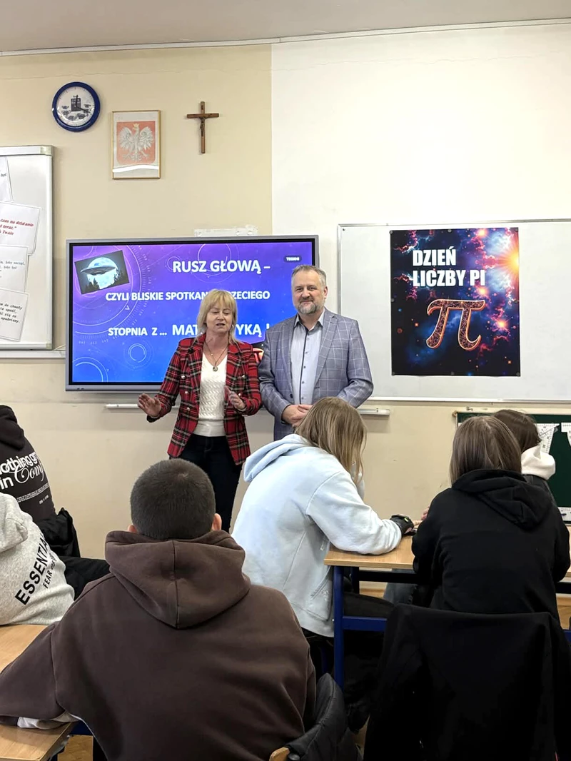 Wprowadzeniem do turnieju była inspirująca prezentacja przygotowana przez nauczyciela matematyki, pana Ryszarda Górę. Przybliżył on uczestnikom historię liczby Pi – jednej z najbardziej fascynujących i tajemniczych stałych matematycznych – oraz podzielił się ciekawostkami, które z pewnością zaskoczyły niejednego słuchacza. Nie zabrakło również elementu zaskoczenia – uczniowie mieli okazję przenieść się w świat iluzji dzięki „magicznej sztuczce”, w której matematyczne zależności odegrały kluczową rolę.