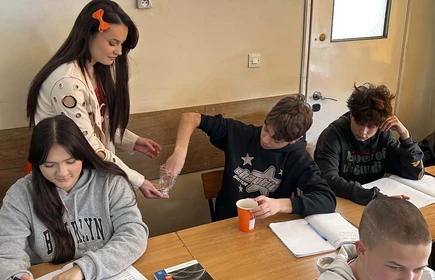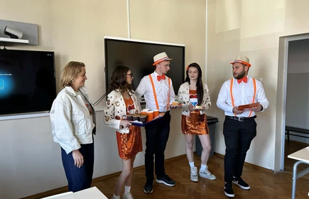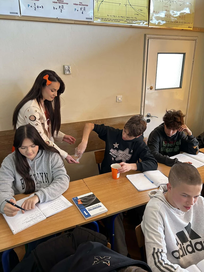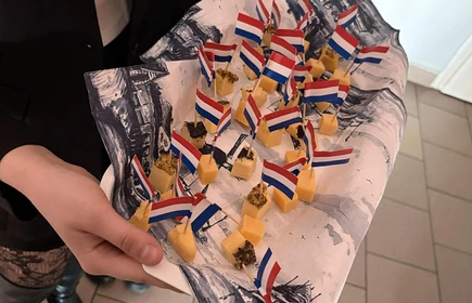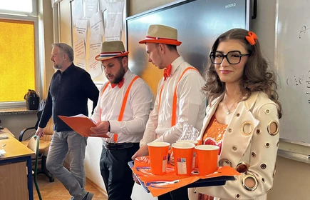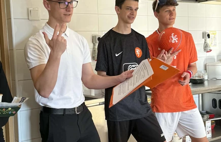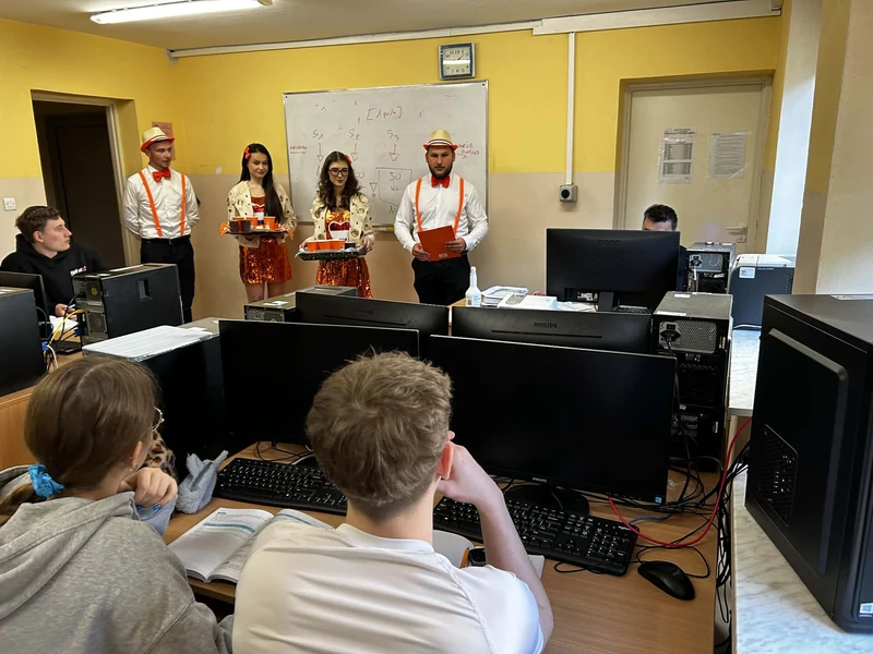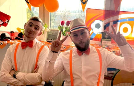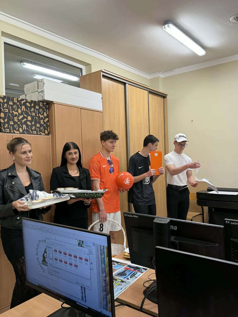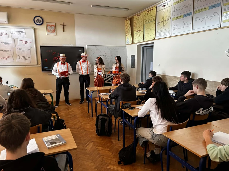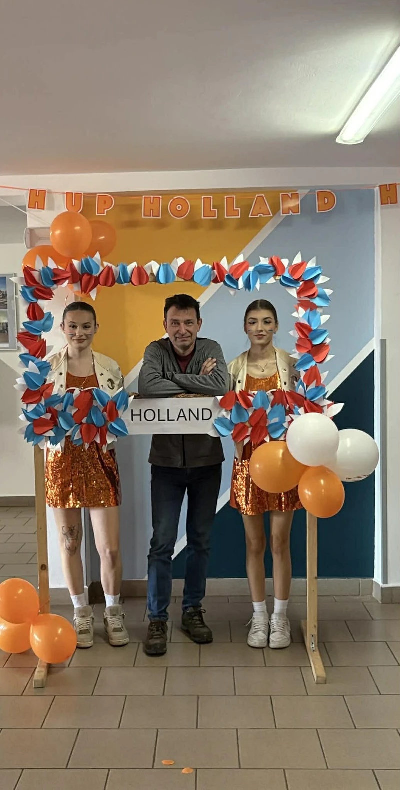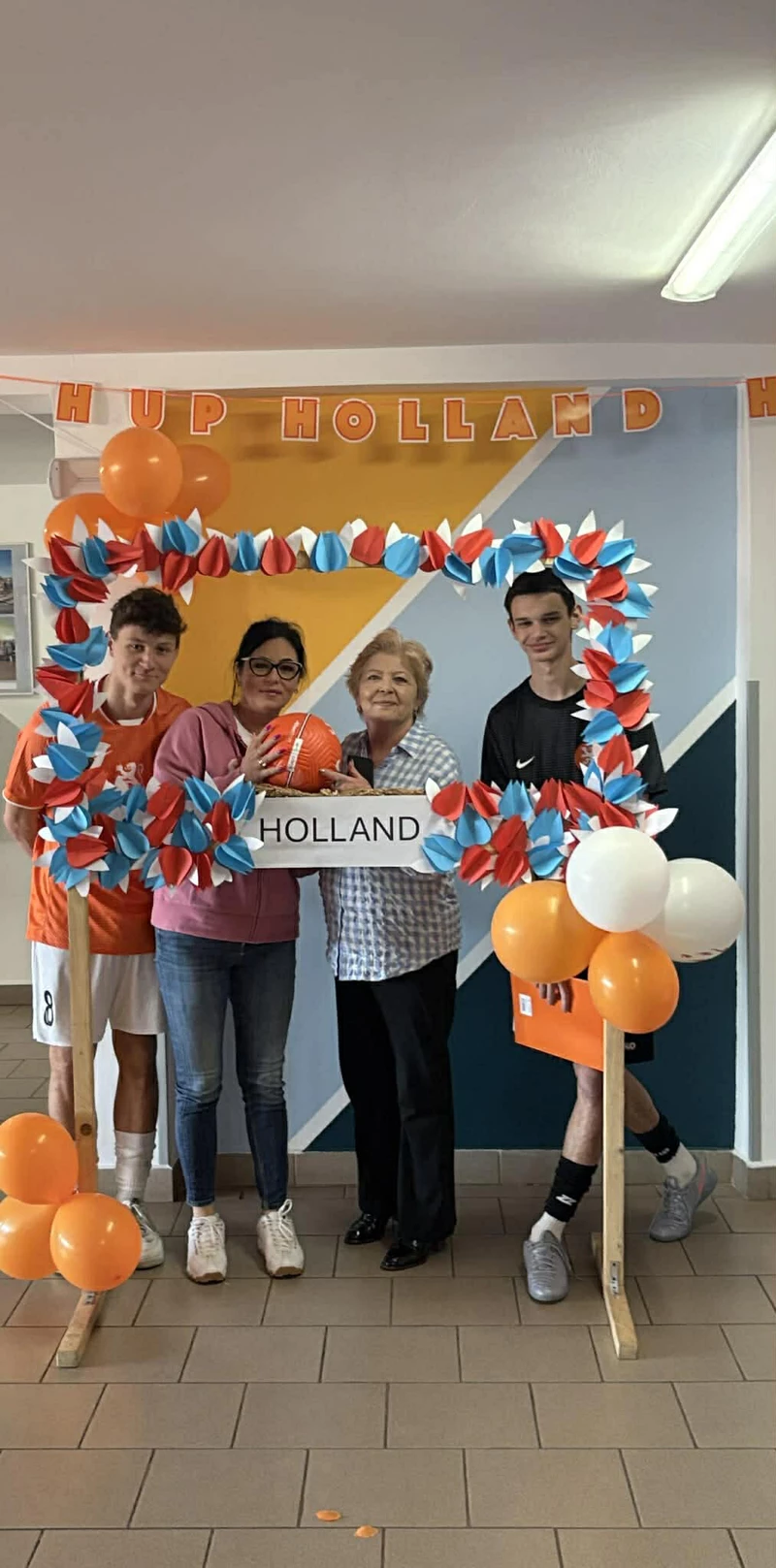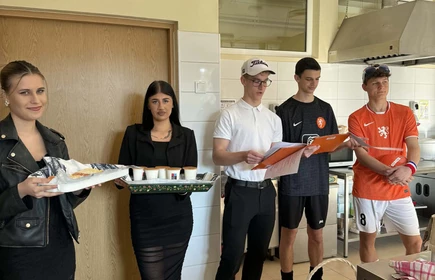 Na początek została nam zaprezentowana wyjątkowa Holandia – po wejściu do szkoły zauważyliśmy mieniące się na pomarańczowo-biało-niebiesko piękne dekoracje, odwołujące się do popularnych symboli tego kraju. Nasi koledzy zapoznawali nas z obrazami najsłynniejszych malarzy holenderskich, podziwialiśmy m.in. reprodukcję „Pejzażu z miłosiernym Samarytaninem”, oglądaliśmy tradycyjne maskotki – króliczki, które każde dziecko otrzymuje w dniu narodzin. Chłopcy z klasy II i III technikum ubrani w stroje klubów piłki nożnej, przedstawiali sylwetki gwiazd futbolowych, poznaliśmy także zasady gry w golfa, ponieważ Holendrzy są wielkimi amatorami tego sportu. To jednak nie wszystkie atrakcje, które dla nas przygotowała nasza anglistka: degustowaliśmy oryginalne sery holenderskie, zajadaliśmy się wspaniałymi herbatnikami stroopwafels, oraz tradycyjnym pomarańczowym ciastem tortowym. Uczniowie przeprowadzili „Quiz wiedzy o Holandii”, najlepsi obdarowywani byli pysznymi cukierkami.