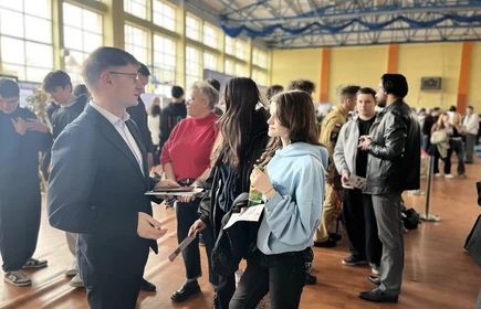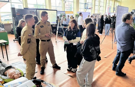 Stoisko promocyjne przygotowane przez naszą szkołę cieszyło się dużym zainteresowaniem. Ósmoklasiści mieli możliwość zapoznania się z ofertą edukacyjną na rok szkolny 2026/2027 oraz uzyskania dodatkowych informacji podczas rozmów z uczniami i nauczycielami szkoły.