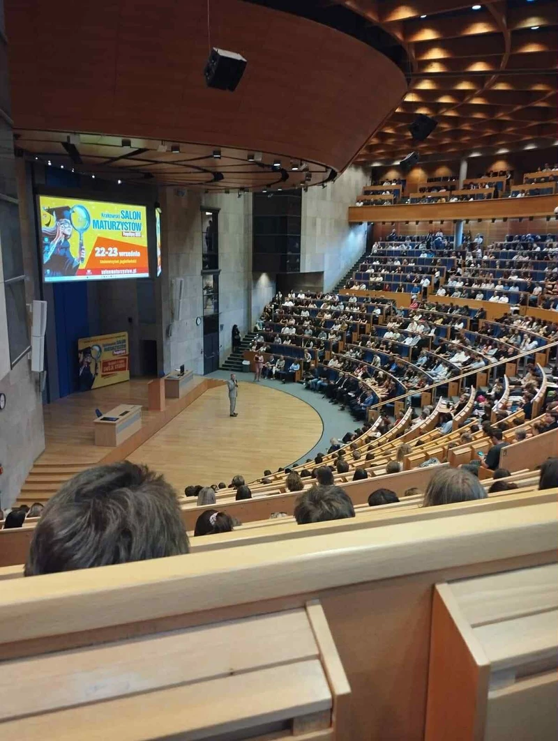 W poniedziałek 22.09.2025 roku, w którym lato powitało jesień, uczniowie klas piątych technikum wraz z opiekunami wzięli udział w ważnym wydarzeniu, jakim był Krakowski Salon Maturzystów Perspektywy 2025. Sale Auditorium Maximum Uniwersytetu Jagiellońskiego przy ul. Krupniczej 33 w Krakowie, zapełniły się tegorocznymi maturzystami, którzy zgodnie z hasłem wydarzenia: „Zaplanuj z nami swoją przyszłość” pozyskiwali informacje o czekającym ich egzaminie maturalnym. Impreza, organizowana przez Fundację Edukacyjną Perspektywy, miała na celu pomoc maturzystom w wyborze przyszłej ścieżki edukacyjnej. Maturzyści, nauczyciele i rodzice mogli skorzystać z bogatego programu wykładów i spotkań z przedstawicielami uczelni, ekspertami OKE i doradcami edukacyjnymi.