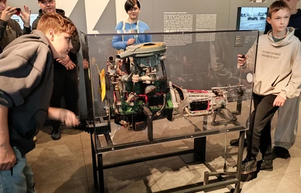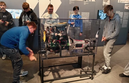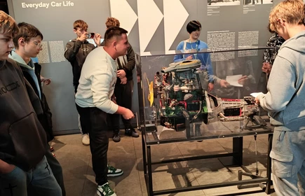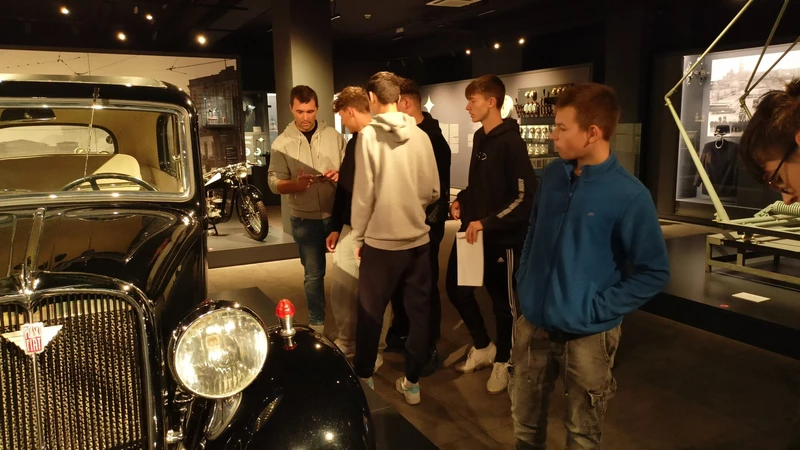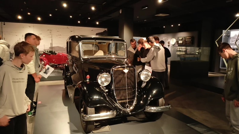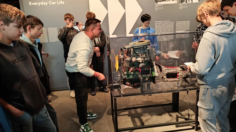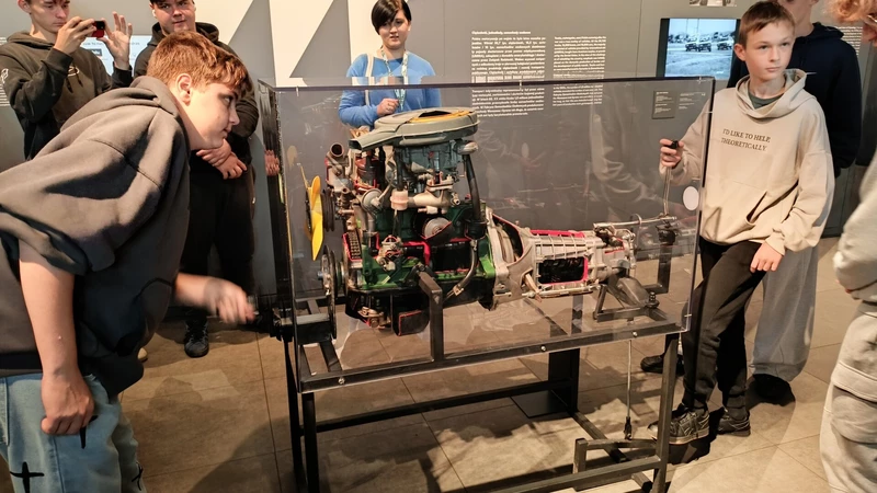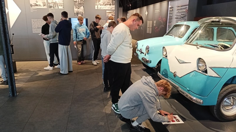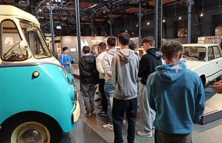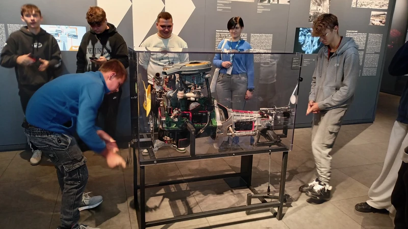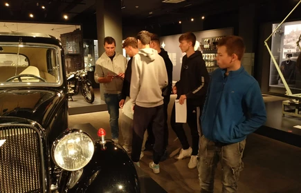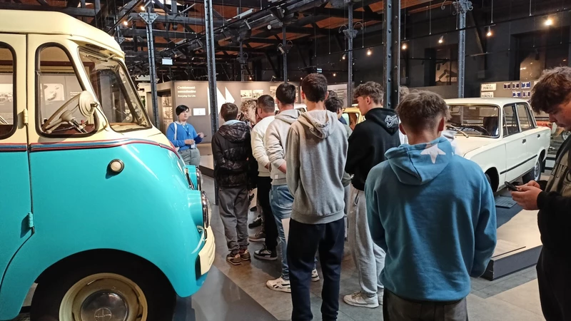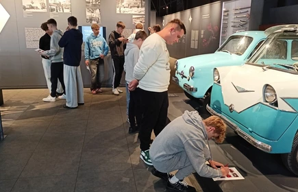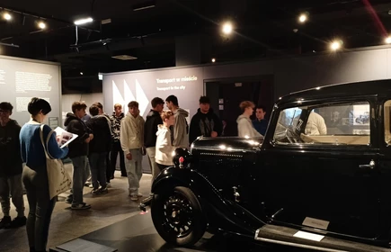 Dnia 26 września 2025 roku uczniowie klasy II i IV technikum udali się do Muzeum Inżynierii i Techniki w Krakowie na lekcję muzealną pod tytułem „O osiągnięciach polskiej motoryzacji”. Zajęcia odbyły się w całości w przestrzeni wystawy pt. „Miasto. Technoczułość”. Wystawa ta jest wyjątkową podróżą w czasie: w przeszłość i przyszłość. Prezentuje miasto z perspektywy 12 dziedzin inżynierii i techniki. Lekcja muzealna, w której czynnie nasi uczniowie brali udział była podróżą po historii czterech kółek. Wędrując po wystawie w towarzystwie edukatorki poznaliśmy polskie marki samochodów. Dowiedzieliśmy się, jakie ciekawe rozwiązania zastosowano w Polskim Fiacie 508, jaki samochód był „królową polskich szos” oraz czym były mikrosamochody. Oprócz wymiaru edukacyjnego, bardzo ważna była także integracja klas. Uczniowie pracowali w grupach, co dawało możliwości poznawania się i akceptacji. Lekcja na terenie muzeum spełniła zatem funkcje wychowawcze. Lekcje muzealne uczą również zachowania się w miejscach publicznych, wyrabiają właściwy stosunek do kultury i historii.