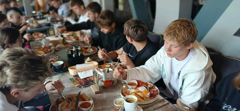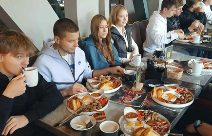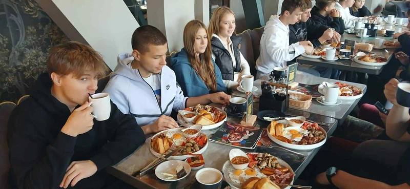 Uatrakcyjnieniem naszej wycieczki było angielskie śniadanie w jednej z krakowskich restauracji. Uczniowie w sposób praktyczny, nie książkowy☺ mogli zapoznać się z tradycjami i kulturą jednego z krajów anglosaskich. Ponadto mogli sprawdzić swoją znajomość zasad dobrego wychowania przy stole, które są esencją kultury osobistej. Znajomość tychże zasad, nie tylko świadczy o nas samych, ale również wpływa na komfort i przyjemność spożywania posiłku w towarzystwie innych.