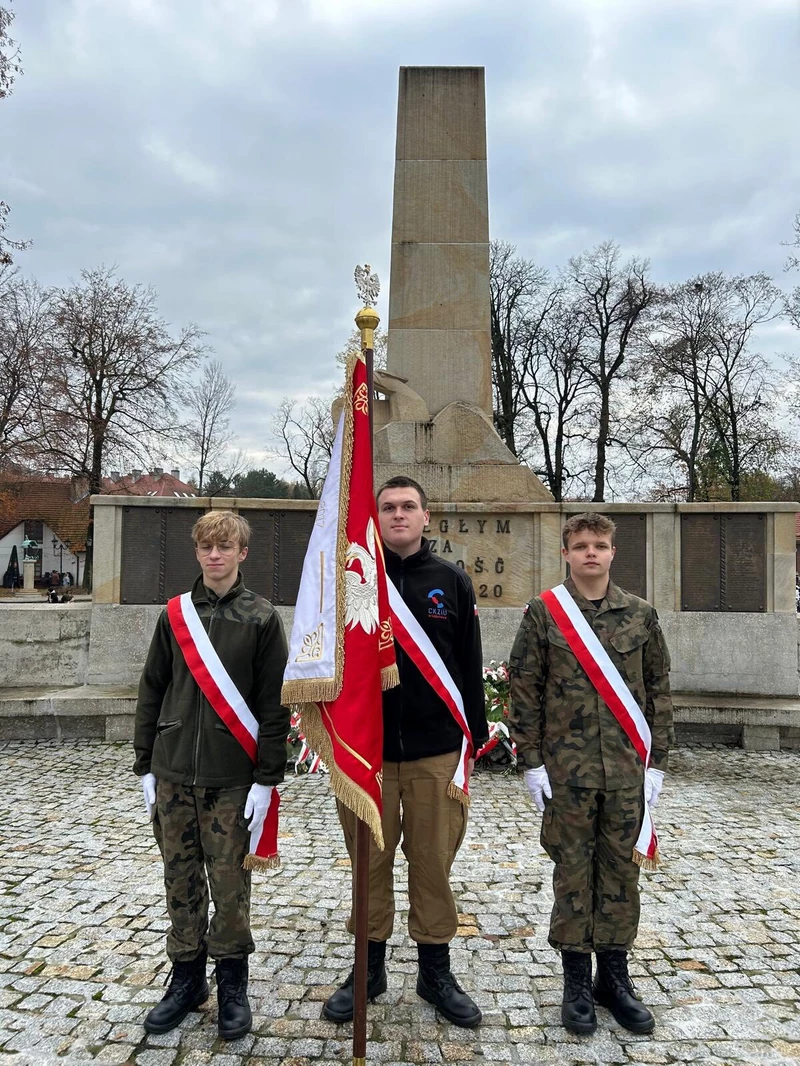W tym pięknym, historycznym dniu Poczet Sztandarowy naszej Szkoły wziął udział w uroczystej Mszy świętej w Bazylice św. Mikołaja w intencji Ojczyzny, a następnie udał się pod Pomnik „Poległym za wolność 1914–1920”.