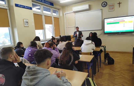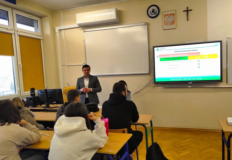 Mury naszej szkoły odwiedzili przedstawiciele Staropolskiej Akademii Nauk Stosowanych w Kielcach. Spotkanie z uczniami klas maturalnych poświęcone było planowaniu przyszłości zawodowej oraz możliwościom, jakie daje kształcenie o profilu praktycznym. Podczas prelekcji uczniowie poznali szczegółową ofertę dydaktyczną. Dziękujemy za inspirujące spotkanie i życzymy naszym maturzystom trafnych decyzji edukacyjnych!