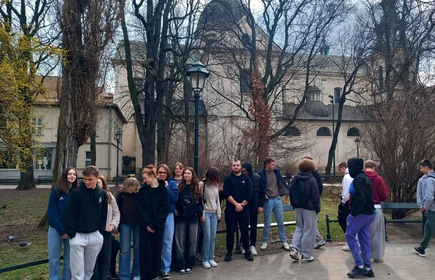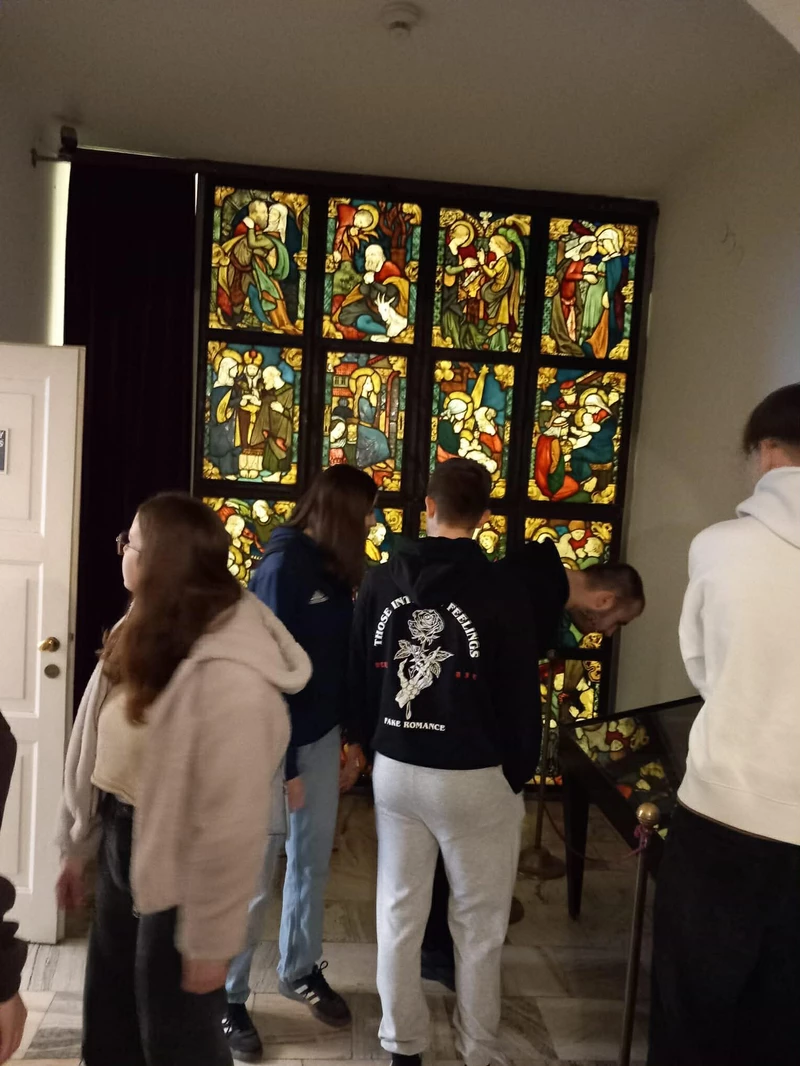 Krakowska Starówka we wtorkowy poranek przywitała nas słonecznym niebem i spokojem zabytkowych uliczek. Loretańska, Krupnicza, Planty budziły się z zimowego marazmu, zachęcając do poznawania wyjątkowych miejsc na mapie kulturalnego Krakowa. Maturzystów zachwyciła świątynia św. Anny. Barokowa architektura oraz bogato zdobione wnętrze przypomniało nam realia tej epoki. Następnie udaliśmy się na dziedziniec Collegium Medicum Uniwersytetu Jagiellońskiego. Dziedziniec ten reprezentuje styl renesansowy, co można było zauważyć przede wszystkim w harmonijnej, symetrycznej budowie oraz arkadowych krużgankach otaczających wewnętrzną przestrzeń. Charakterystyczne były także zdobione kolumny oraz proporcjonalne rozmieszczenie okien i detali architektonicznych. Całość sprawiała wrażenie uporządkowanej i eleganckiej, co jest typowe dla architektury renesansu, czerpiącej inspirację z antyku. Wnętrze Muzeum Mehoffera zrobiło na nas duże wrażenie, ponieważ zachowało charakter dawnego domu artysty. Bogato urządzone pomieszczenia, pełne oryginalnych mebli, dekoracji oraz dzieł sztuki przykuwały naszą uwagę. Zachwyciły nas kolorowe witraże, projekty malarskie oraz liczne obrazy autorstwa Józefa Mehoffera. W muzeum panowała wyjątkowa atmosfera – można było poczuć klimat epoki, w której żył artysta. Oglądaliśmy także jego pracownię, w której powstawały dzieła, co pozwoliło nam lepiej wyobrazić sobie jego codzienną pracę i inspiracje. Wycieczkę zakończył seans filmowy, wszyscy wróciliśmy zadowoleni i bogatsi o nowe doświadczenia.
