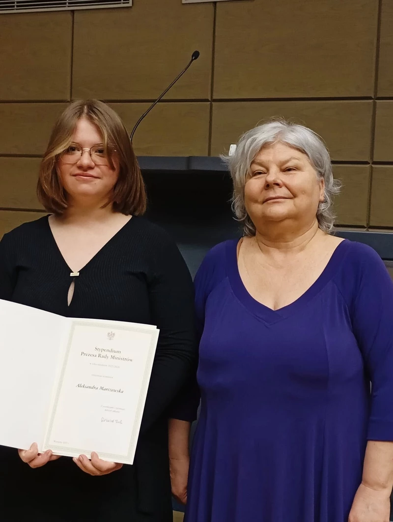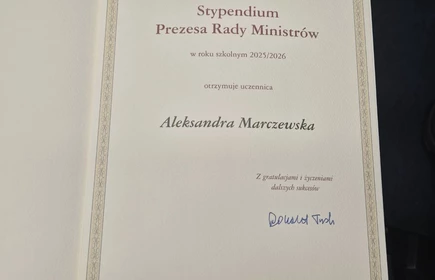 Stypendium Prezesa Rady Ministrów przyznawane jest uczniom za szczególne osiągnięcia w nauce. Aleksandra uzyskała najwyższą średnią ocen w naszej szkole.