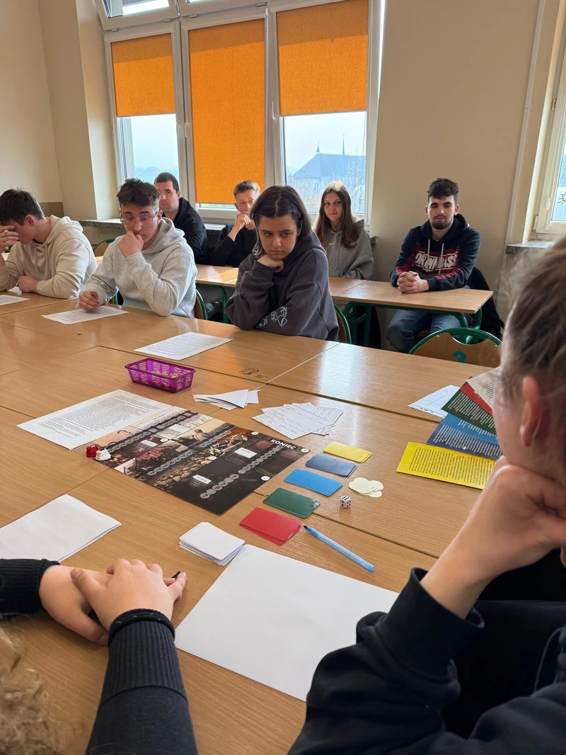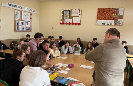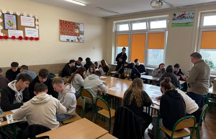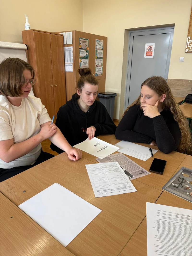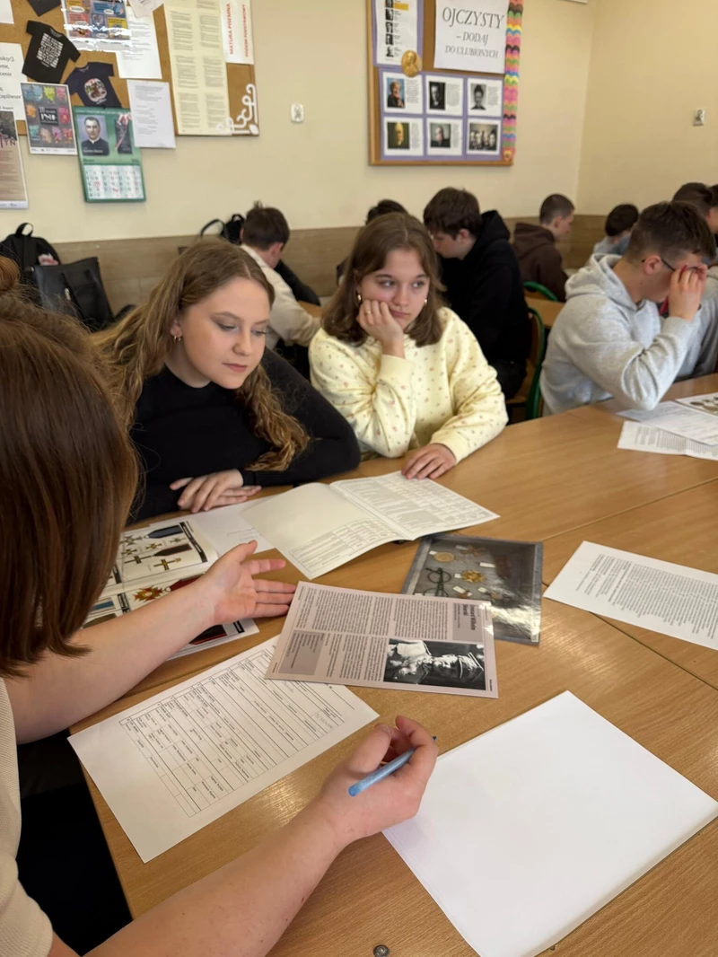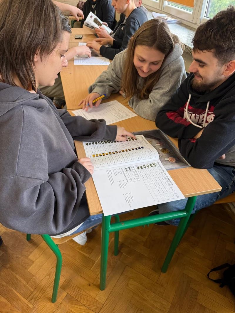 Dnia 16 kwietnia 2026 roku uczniowie Technikum wzięli udział w spotkaniu z Panem Michałem Masłowskim – Naczelnikiem Oddziałowego Biura Edukacji Narodowej IPN w Krakowie. Obecność tak zacnego Gościa związana była z realizowanym w szkole projektem „Silni Polską”, wydarzenie miało charakter edukacyjny i zostało połączone z warsztatami pt. „Śledztwo katyńskie”. Spotkanie rozpoczęło się od prezentacji projektu edukacyjnego opracowanego przez grupę uczniów, efekty pracy spotkały się z ogromna aprobatą Pana Naczelnika, który pogratulował uczniom ciekawego sposobu na promowanie historii regionu. Pan Masłowski nakreślił tło historyczne związane ze zbrodnią katyńską. Uczniowie mieli okazję dowiedzieć się o okolicznościach tego tragicznego wydarzenia, jego przebiegu oraz wieloletnich próbach ukrywania prawdy przez władze Związku Radzieckiego. Główną częścią wydarzenia były warsztaty „Śledztwo katyńskie”, podczas których uczniowie wcielili się w rolę badaczy i historyków. Pracując w grupach, analizowali materiały źródłowe, sprawdzali zawartość „skrzynek katyńskich”, przywracali tożsamość bezimiennym ofiarom. Warsztaty miały charakter interaktywny, co pozwoliło uczniom lepiej zrozumieć proces badania historii oraz trudności związane z dochodzeniem do prawdy. Ważnym aspektem zajęć było także kształtowanie postaw – wrażliwości na los drugiego człowieka, szacunku dla ofiar oraz odpowiedzialności za pielęgnowanie pamięci historycznej. Warsztaty skłaniały do refleksji nad znaczeniem prawdy w życiu społecznym oraz rolą historyków w jej odkrywaniu.