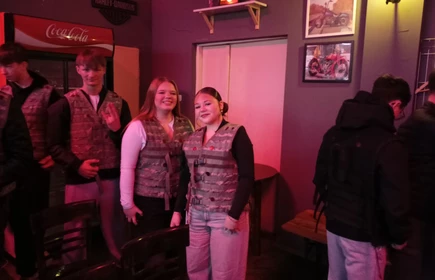 Główną atrakcją dnia była rozgrywka paintballowa, która dostarczyła uczestnikom wielu emocji i pozytywnej adrenaliny. Podzieleni na drużyny uczniowie mieli okazję sprawdzić swoje umiejętności współpracy, strategii oraz szybkiego podejmowania decyzji. Nie zabrakło również zdrowej rywalizacji, śmiechu i świetnej atmosfery.