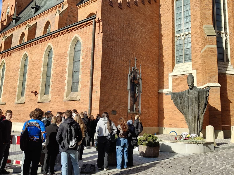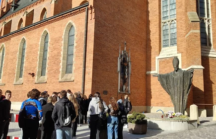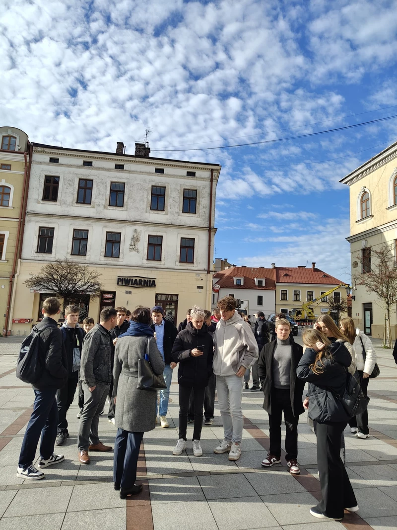 W piątkowy poranek zasiedliśmy na widowni tarnowskiego Teatru im. Ludwika Solskiego w oczekiwaniu na spektakl, który próbował udzielić odpowiedzi na pytanie, kim jest współczesny człowiek? Jak przeżyć młodość, podejmować decyzje, gdy trudno określić, czego tak naprawdę się pragnie. Czy w przebodźcowanym świecie warto pójść na terapię, a jeżeli tak, to na jaką? I na jak długo? Poznaliśmy życie Dominiki Mazur, siedemnastoletniej dziewczyny z Tarnowa, która nie potrafi sprostać oczekiwaniom rodziny, i... znika... Czy ta historia została całkowicie zmyślona? Te pytania towarzyszyły nam podczas spaceru po tarnowskiej Starówce. Pogoda podkreślała piękno renesansowego ratusza, kamieniczek, katedry. Tylko ruiny Bimy przypomniały nam, że brak porozumienia, pogarda i obojętność w stosunku do drugiego człowieka zawsze przynosi nieszczęścia i śmierć. Wracaliśmy do domu bogatsi w nowe doświadczenia i wiedzę.