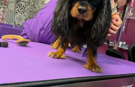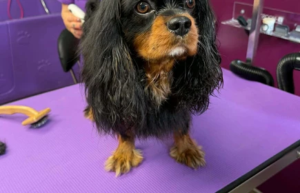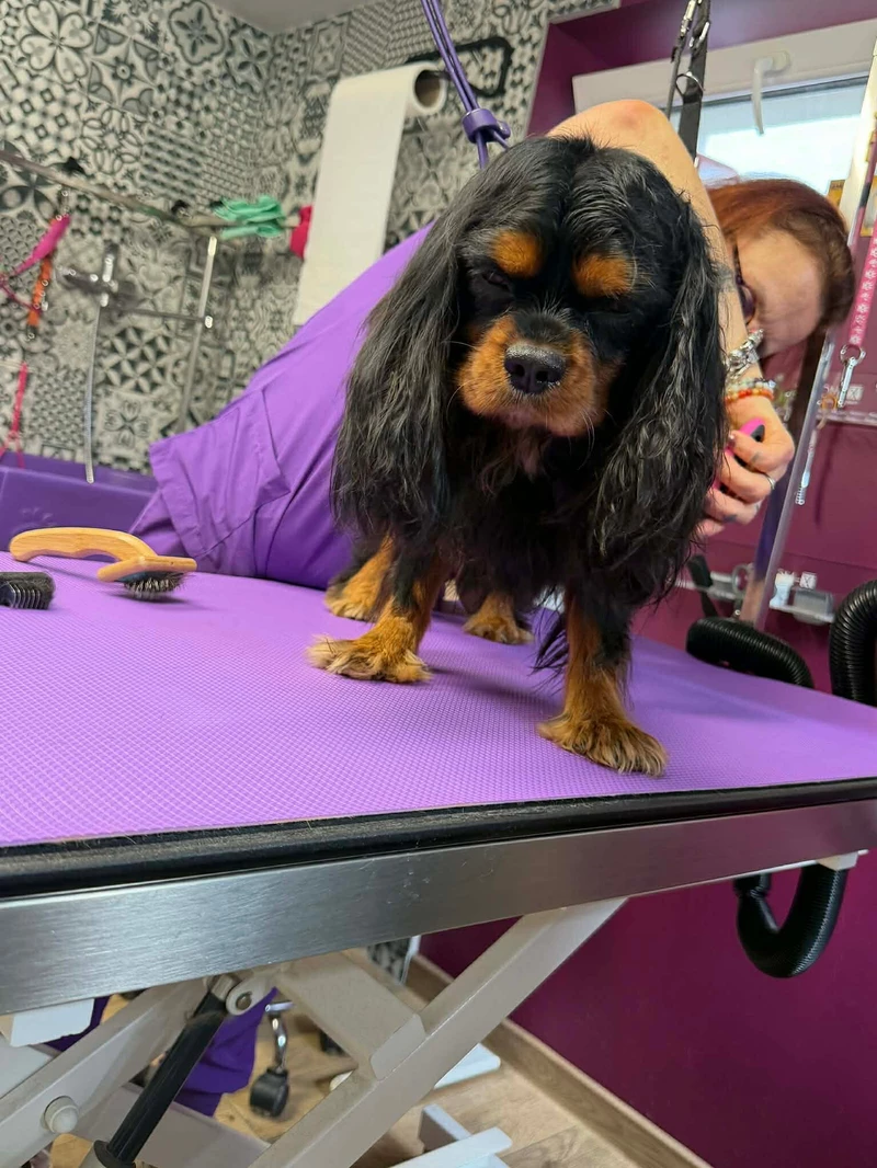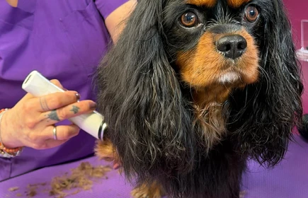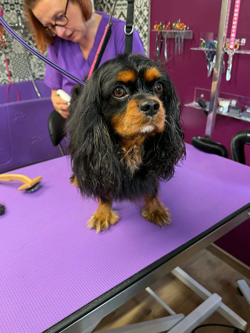 Uczniowie klas 3 i 4 Technikum Weterynaryjnego mieli okazję uczestniczyć w wyjątkowym pokazie pielęgnacji pieska rasy Cavalier King Charles Spaniel w Salonie Groomerskim Pies & Kot.